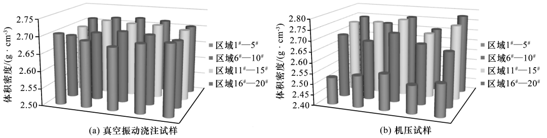 圖3 兩種試樣20個區(qū)域的體積密度分布
